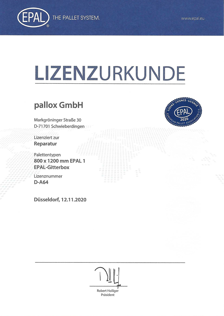 Die im Jahr 1991 gegründete Vereinigung EPAL - European Pallet Association steht seit ihrer Gründung für die Sicherung und den Ausbau des weltweit erfolgreichsten Poolingsystems für Ladungsträger. Um den Standard erfüllen zu können und für eine gleichbleibend gute Qualität zu sorgen, wählt die EPAL ihre Lizenznehmer sehr sorgfältig aus.